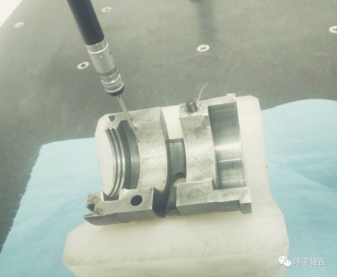 使用三坐標測量儀對瓦型、內孔尺寸、密封尺寸、外圓安裝尺寸、油環(huán)尺寸裕度等關鍵要素進行復核。