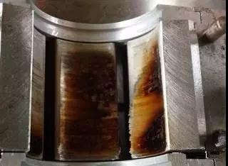 軸承間隙調(diào)整過(guò)小同樣會(huì)造成的軸瓦的高溫?zé)龤?,如圖B增速器高速軸徑向軸瓦嚴(yán)重?zé)龤КF(xiàn)象。