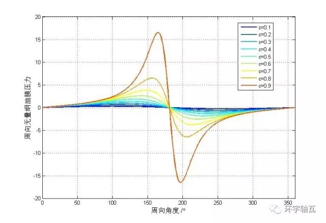 當(dāng)軸承寬度l遠(yuǎn)大于直徑d時,可近似認(rèn)為油膜內(nèi)無軸向流動,壓力沿軸向均布,于是無量綱Reynold方程簡化為如下常微分方程(一維Reynold方程):