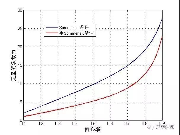 圖6 無量綱承載-偏心率變化關(guān)系