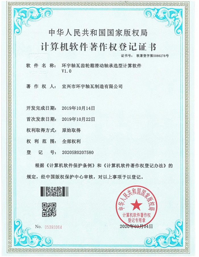 3月,環(huán)宇軸瓦開發(fā)的《齒輪箱滑動軸承選型計算軟件》完成登記。