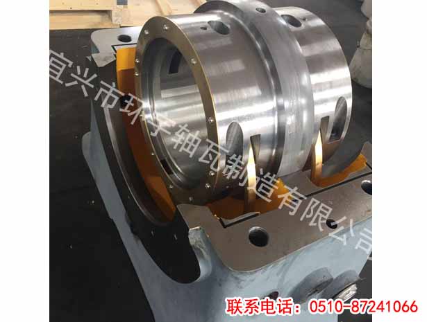 2016年10月21日裝置在主軸上的推力盤兩邊工作面和非工作面各有若干塊推力瓦塊,瓦塊反面有一銷釘孔,靠此孔將瓦塊安頓在裝置環(huán)的銷釘上,瓦塊可以環(huán)繞銷釘略為滾動(dòng)。
