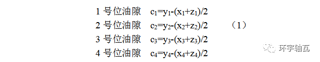 5.2.3 拆除軸承座上蓋,用千分尺測量鉛絲后按下列計算式計算間隙并記錄。