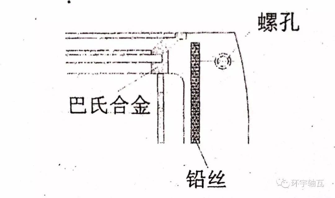 7.4 上軸瓦同下軸瓦合攏面鉛絲應(yīng)放置在緊固螺栓內(nèi)側(cè),但不放在巴氏合金上,見圖5。